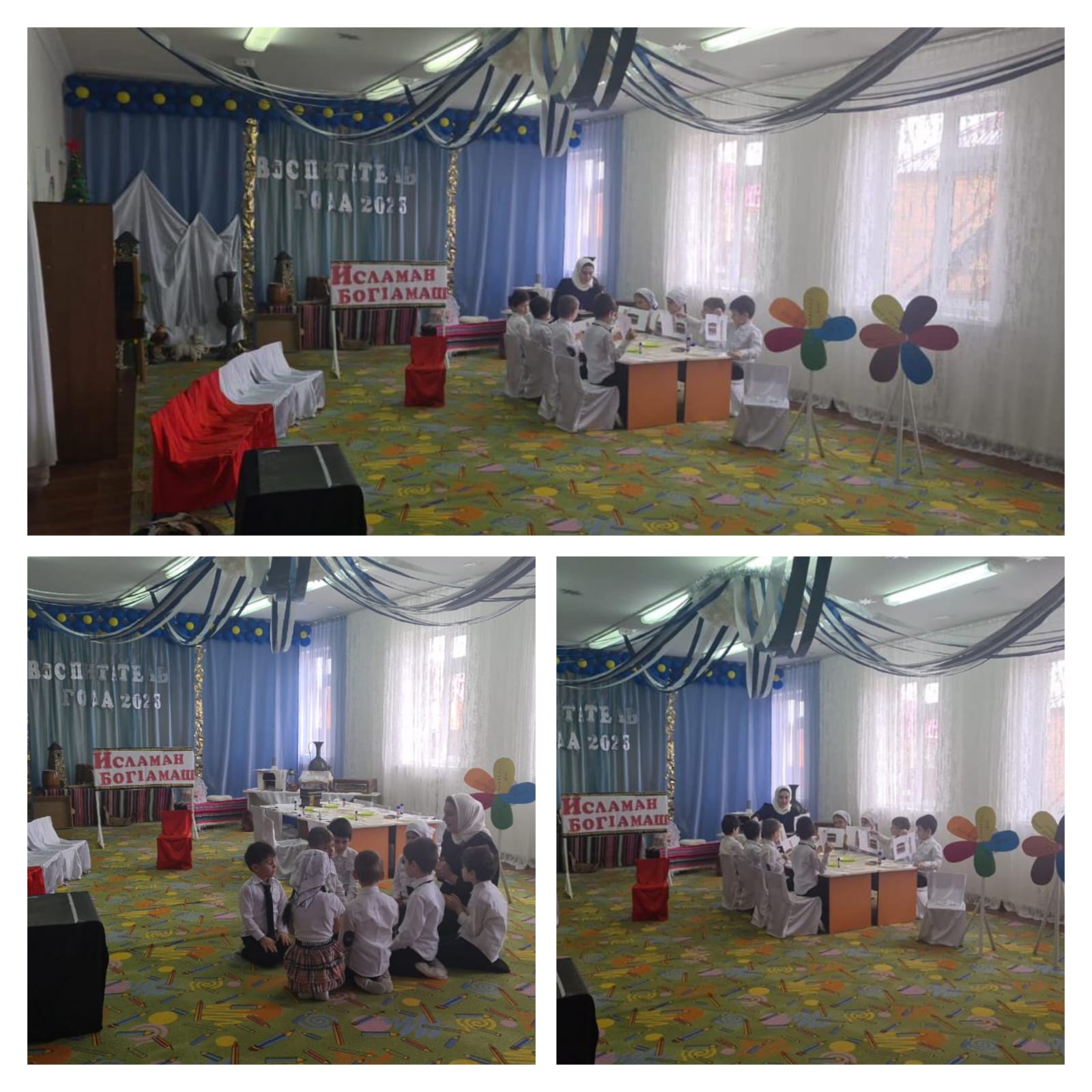 08.02.2023В МБДОУ "Детский сад "Звёздочка" с.Самашки" воспитателем старшей группы "Ежата", было проведено открытое занятие на тему "Столпы Ислама". Цели: воспитывать уважение к религии, обогатить словарь дошкольника словами культурологического значения,расширить представления дошкольника об исламской культуре. Воспитатель Апаева Малика рассказала детям что, Ислам держится на «пяти столпах» – основных правилах, которые должен соблюдать каждый мусульманин. 1.Шахада – вера в то, что нет Бога, кроме Аллаха, а Мухаммед есть посланник Аллаха; 2.Намаз – ежедневная 5-кратная (с рассвета и до заката) молитва. Женщины и дети читают его дома. Мальчики с 12 лет в мечети. 3.Зякет – Благотворительность в пользу бедных– 1/40 часть годового дохода. 4.Пост в месяце Рамадан (с рассвета до заката) 5Хадж – 6 дневное паломничество в Мекку (хадж), совершаемое хотя бы единожды в жизни. Также была проведена аппликация "Мечеть в Мекке". Цели и задачи поставленные воспитателем были достигнуты.
